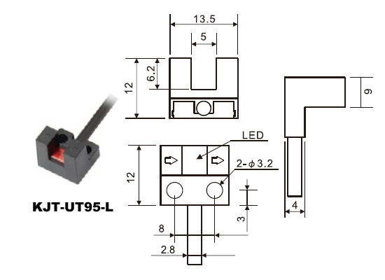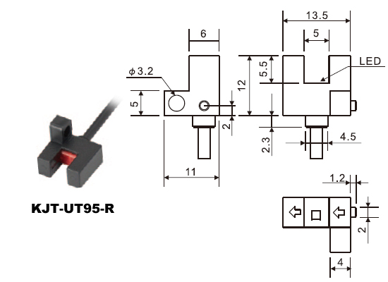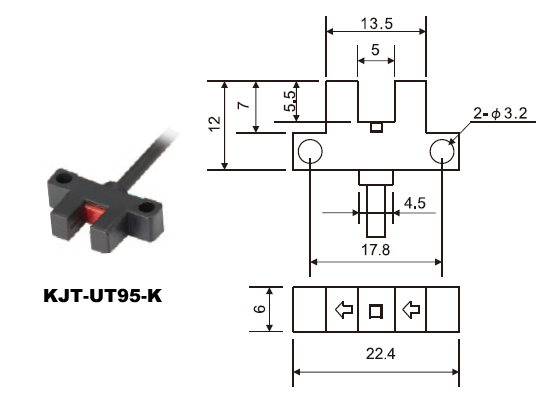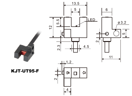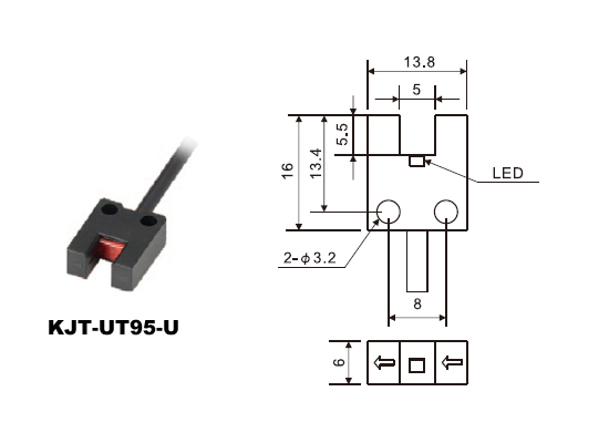 KJT-UT95系列超小型槽型光电传感器,所有型号均装备有两个独立的输出-入光时ON/遮光时ON,可根据使用场所的不同,应对不同输出要求。5-24V宽电压范围,3kHz高速响应,可应用于多种工业环境。